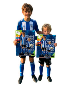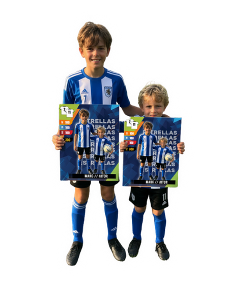 La carta más especial para los pequeños futbolistas. Con el Cromo Dúo podrás juntar a dos niños en la misma tarjeta: hermanos, mejores amigos o compañeros de equipo convertidos en auténticas estrellas de colección.
