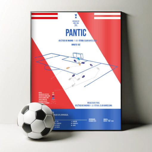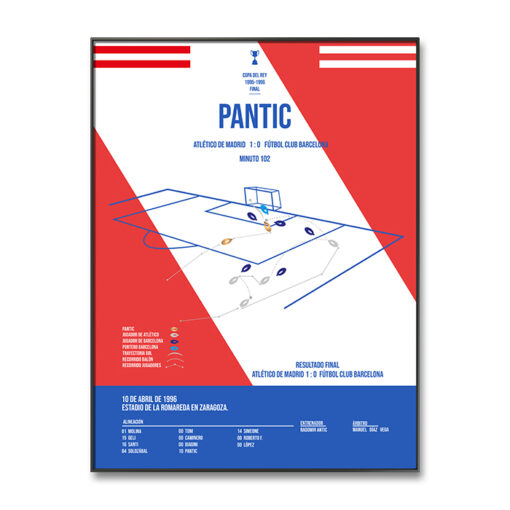 Revive con este póster el icónico gol de Milinko Pantić en la final de la Copa del Rey de 1996 contra el Barcelona. Un encuentro lleno de emoción en el que Pantić brilló con un impresionante cabezazo, llevando al Atlético de Madrid a levantar el trofeo en una noche para el recuerdo.