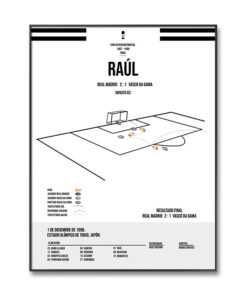 Revive con este póster el inolvidable gol de Raúl González Blanco en la final de la Copa Intercontinental contra el Vasco da Gama. Un partido emocionante que se decidió gracias a esta perla llena de talento y maestría, llevando al Real Madrid a conquistar un prestigioso título internacional.